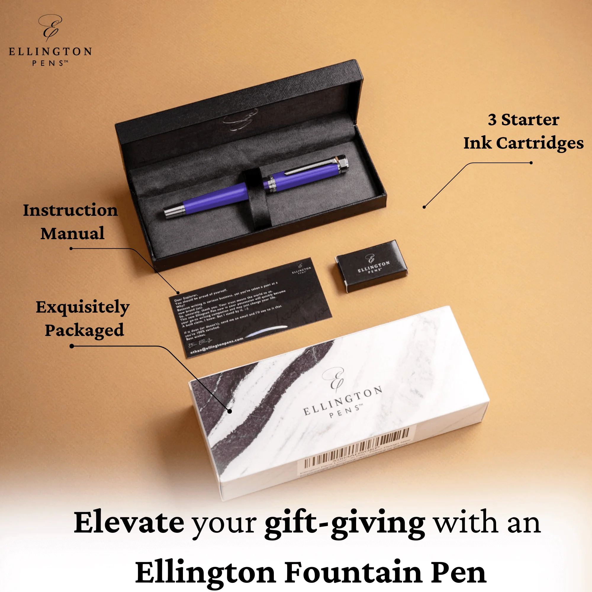- Crafted with a stainless steel barrel and beautiful trimmings, the Ellington Pen embodies timeless British elegance. Its refined design offers a luxurious writing experience for professionals and enthusiasts alike.